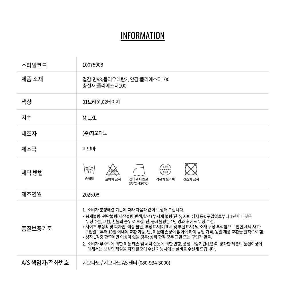 • 교환 진행시 배송비 5,000원 주문자 성함으로 입금 부탁드립니다(신한은행:267-05-028523 (주)지오다노)