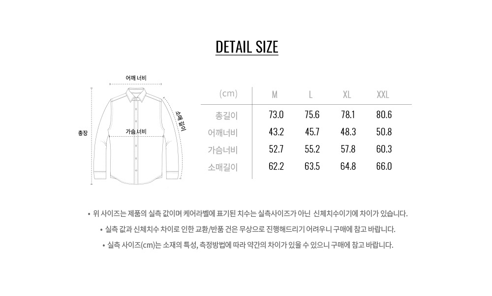 단정한 카라 형태와 정제된 봉제 디테일을 통해 깔끔한 실루엣을 완성하며, 프론트 버튼 플래킷과 커프스 마감으로 포멀한 인상을 강조합니다. 어깨와 암홀 라인은 활동성을 고려해 정교하게 설계되어 착용감이 안정적이며, 전체적으로 불필요한 장식을 배제해 미니멀하고 완성도 높은 디테일이 특징입니다.