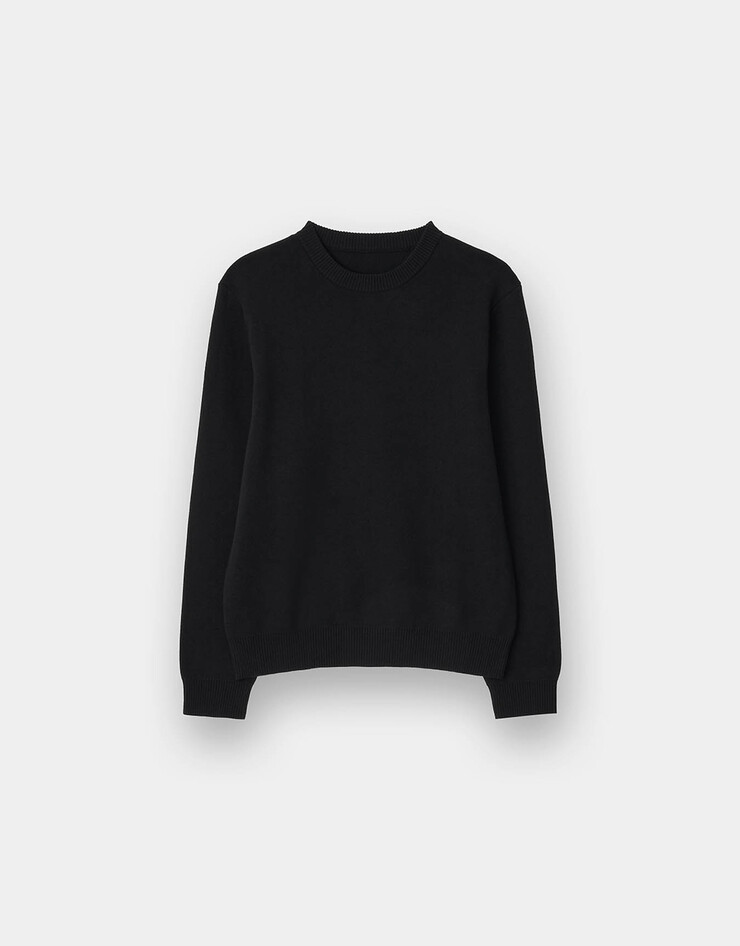 면100% 원사를 사용한 12GG 더블니트 조직의 크루넥 롱슬리브 스웨터입니다.