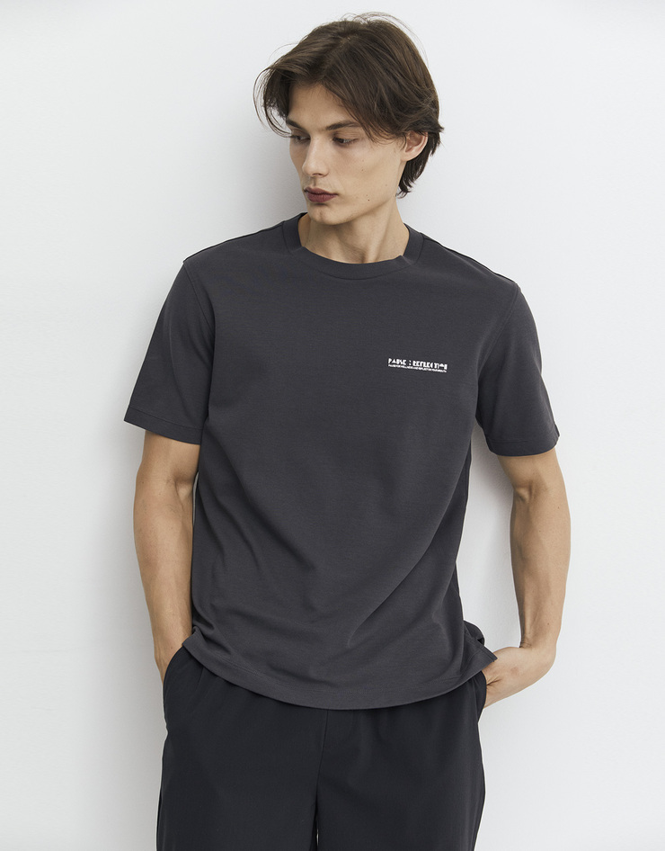앞 뒷판 그래픽이 포인트가 되는 라운드넥 티셔츠 입니다.