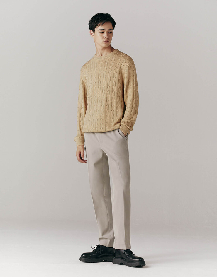 케이블 조직으로 단정하면서도 세련된 느낌으로 입기 좋습니다.