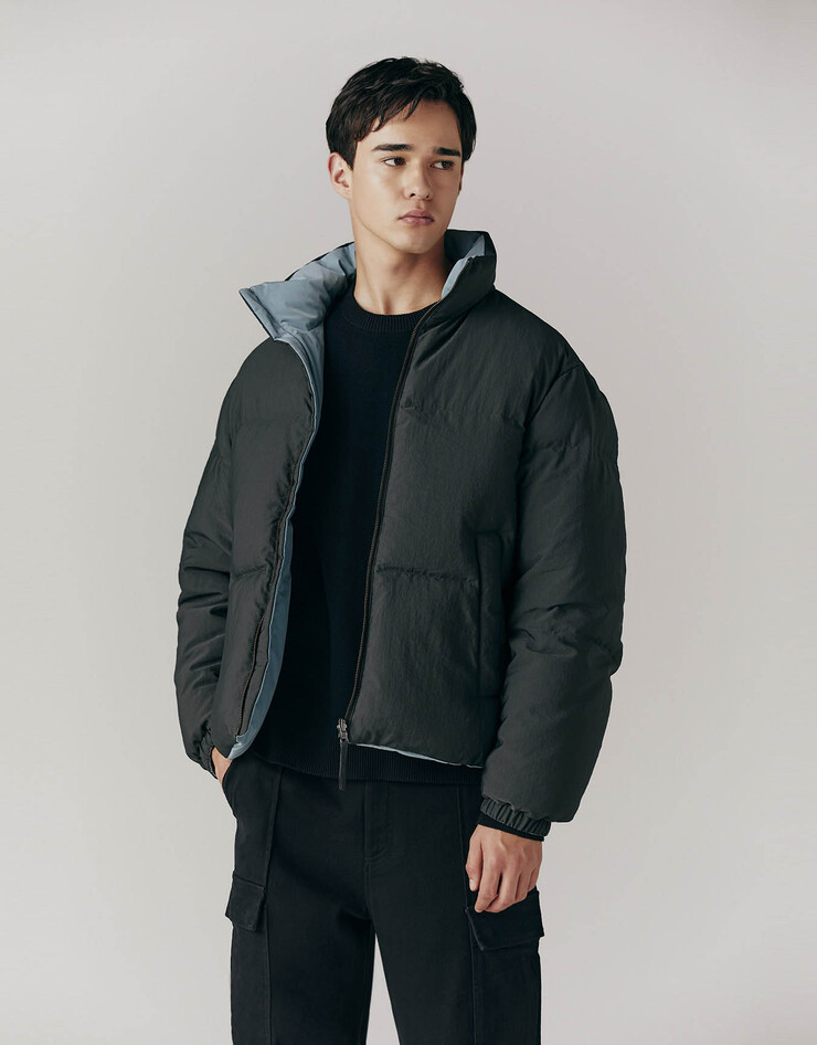 적당히 여유로운 실루엣의 리버서블 숏 다운 자켓입니다.