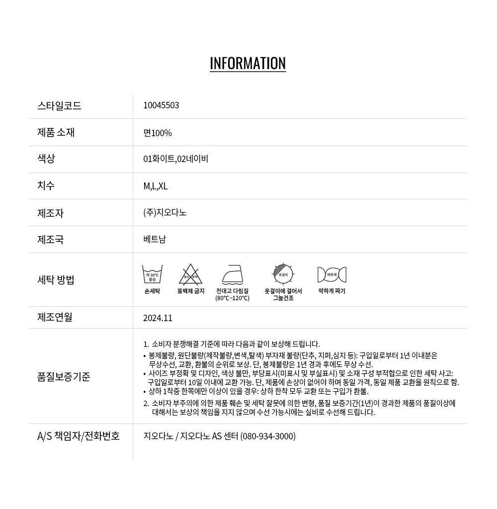 • 교환 진행시 배송비 5,000원 주문자 성함으로 입금 부탁드립니다(신한은행:267-05-028523 (주)지오다노)